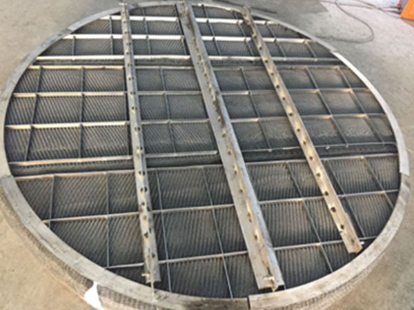 用壓有波紋的絲網制成各種規格尺寸。絲網除霧器在國外有許多著名廠商都有系列產品針對不同領域。其作用機理為:夾帶在氣相中的細小液體霧滴,經過絲網除霧器的絲網時,霧滴碰到除霧絲網上,被粘附或吸附下來,經過反復多次吸附霧滴,極小的霧滴附聚、聚結成為大的液滴,液滴在重力的作用下。